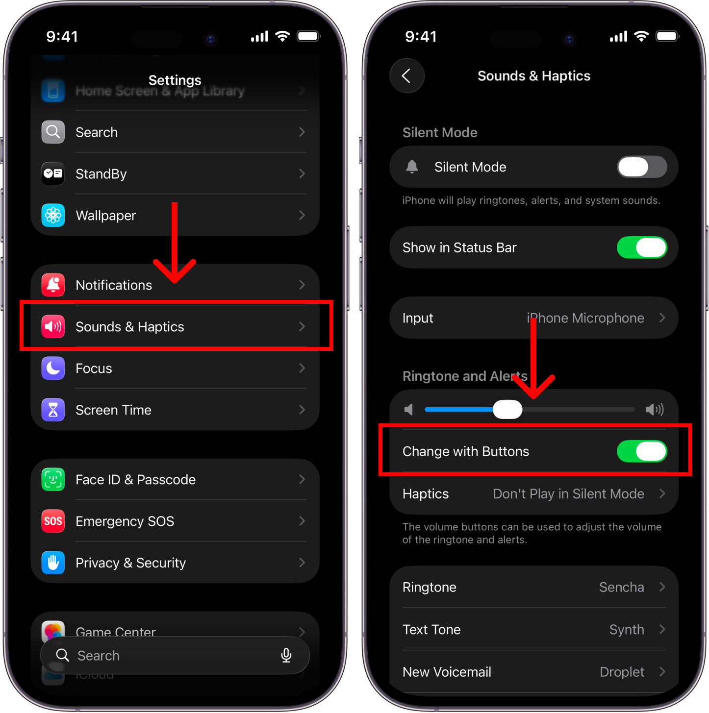 Go to Settings > Sounds & Haptics (same screen as before) and turn ONChange with Buttonsoption.