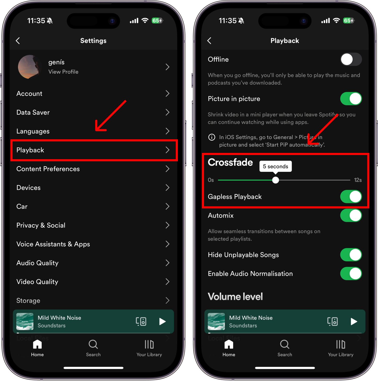 Step 2: Tap Playback. Then, set Crossfade to minimum 5 seconds and enable Gapless Playback.